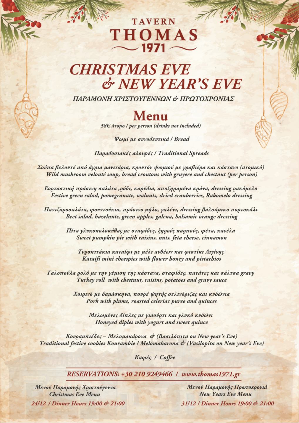Το εστιατόριο – ταβέρνα «Thomas 1971 Tavern» αποτελεί αναβίωση μιας εξευγενισμένης παραδοσιακής μεταπολεμικής ταβέρνας της Αθήνας του 1950 και μετά. Υφάσματα στους τοίχους, ξύλινες κατασκευές με τις ατέλειες του χειροποίητου, μαρμάρινες επιφάνειες, αποτελούν βασικά στοιχεία διακόσμησης. Απο το 1950 η Ελλάδα είχε επιστρέψει στα προπολεμικά επίπεδα αλλα εξακολουθούσε να ήταν μία φτωχή χώρα. Ο αγροτικός τομέας είχε δεσπόζουσα θέση στην οικονομία και η πλειονότητα των κατοίκων της χώρας ζούσε σε χωριά και κωμοπόλεις. Μεταξύ 1953 και 1973 περίπου 1,3 εκατομμύρια Έλληνες μετακινήθηκαν απο την ύπαιθρο στις μεγάλες πόλεις. Ελληνικά Αγροτικά προϊόντα άρχισαν σιγά σιγά να φτάνουν στην Αθήνα όπως αλεύρι προζύμι, ελιές, λάδι, πατάτες, κρεμμύδια, μελιτζάνες, κολοκύθακια, κρέατα, πουλερικά και άλλα πολλά. Το εστιατόριο – ταβέρνα «Thomas 1971 Tavern» αναβιώνει τις τότε γεύσεις που είχε η Αθήνα έχοντας ως σκοπό να σερβίρει παραδοσιακή ελληνική κουζίνα στους Αθηναίους αλλα και στους επισκέπτες της Αθήνας από όλα τα μέρη του κόσμου. Χειροποίητο ψωμί με ελιές, αρνάκι με χόρτα, πουρέ πατάτας, χόρτα, πίτες, χωριάτικη σαλάτα, κοκκινιστά κρέατα και ψάρια είναι κάποια απο τα πιάτα που σερβίρονται καθημερινά στην Thomas 1971 Tavern
